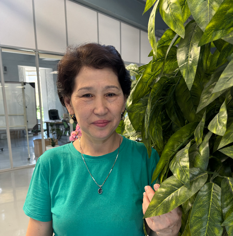 Гүлдерге жан бітіріп, тазалықпен тыныстап жүрген Рахима Меңдібаева кеңсеміздің нағыз «феясы» десек те болады. Ол 14 жылдан аса компаниямыздың жарқырап, жайнап тұруына ерекше атсалысып келеді. Бір қызығы әріптесіміз біздің компанияға дейін 20 жыл бойы медбике болып қызмет атқарғанын бірі білсе, бірі білмес.