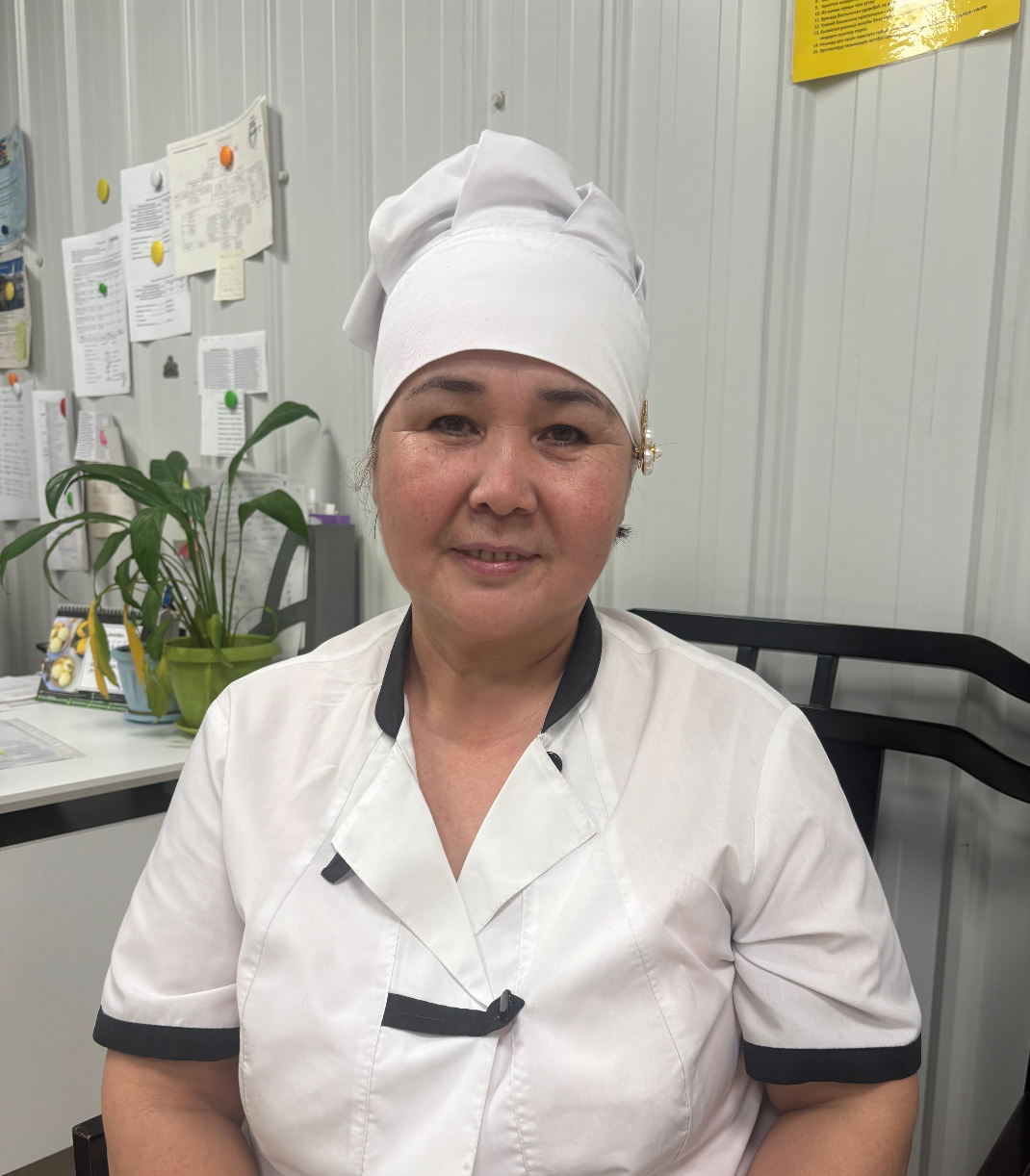 «Бірінші күні жұмысқа келгенімде маған: «Асханаға орын жоқ, техничка боласыз ба?» - деді. Өмірімде істеп көрмеген жұмыс болған соң ба, білмедім әйтеуір үш сағаттай ойланып отырдым. Сол кезде күзетші жігіт: «Техничка болуға да сонша ойлануға бола ма?» - деп күлгені әлі есімде. Алғашқы жұмыс күнімде столдың астына кіріп, полды бес сағат жуған екенмін. Әріптесім, тетя Нина соны көріп, күліп: «сенбі күні кел, қалай жуу керегін үйретем» – деді. Солай сенбі күні келіп, пол жууды үйрендім».